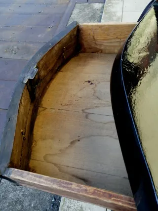 Pietra ollare rettangolare da tavola con base e due bruciatori. Mai usata. Misure in foto.