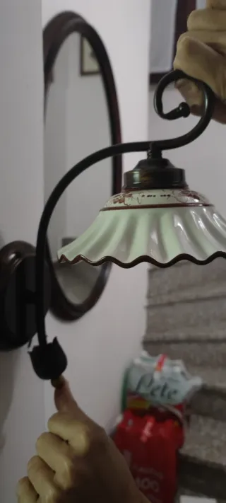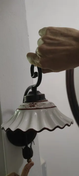 Applique da parete con un design elegante. - Finitura in ceramica e metallo. - Dettagli decorativi floreali. - Colore bianco con bordi e decorazioni marroni. 3 pezzi disponibili il prezzo è cadauno