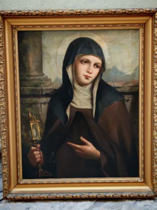 Antico dipinto ad olio su tela raffigurante Santa Chiara Periodo metà dell 800 Misura 62 x 50 cm cornice esclusa