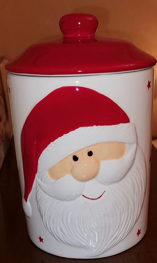 Simpatica biscottiera con tema natalizio e Babbo Natale.