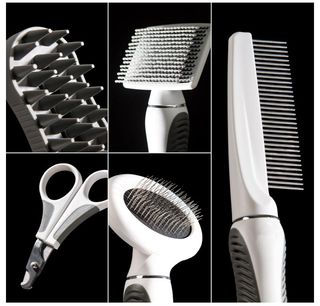 Contenuto della confezione 1 striglia in gomma 1 spazzola in metallo 1 pettine sottile 1 spazzola in nylon 1 tagliaunghie a lama curva