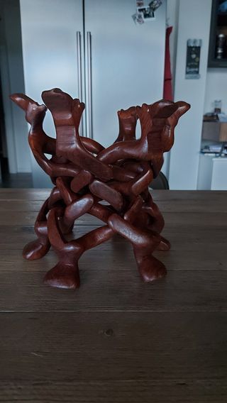 Statuetta etnica portafortuna originale proveniente da Santo Domingo, realizzata a mano in legno scuro
