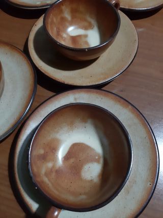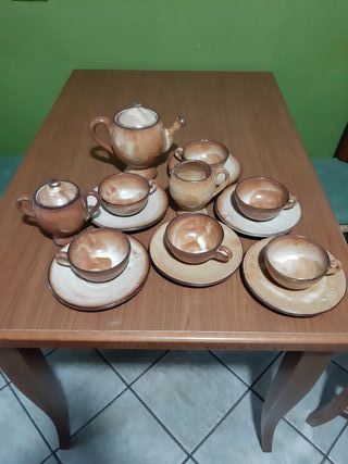 Servizio da te con 6 tazze teiera lattiera e zuccheriera in terra cotta