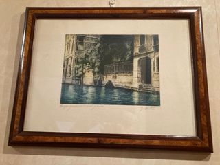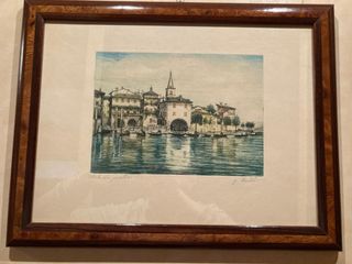 Vendo splendido set di 4 opere firmate dal maestro G. Bartoli, celebri per la loro delicatezza e precisione nei paesaggi italiani. Si tratta di acqueforti acquerellate a mano, incorniciate con vetro protettivo. Dettagli delle opere: • Venezia – Giardino sul Canal Grande (34×44 cm) • Venezia – Ponte dei Sospiri (43×34 cm) • Roma – Castel Sant’Angelo (33×44 cm) • Isola dei Pescatori (34×44 cm) Caratteristiche: • Firmate a mano da G. Bartoli • Acquerellate a mano su acquaforte • Cornici originali in legno pregiato, pronte per essere appese • In ottime condizioni, leggere tracce del tempo