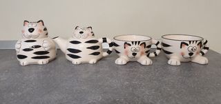 Adorabile set da tè a tema gatto, perfetto per gli amanti dei felini. Questo set aggiunge un tocco giocoso alla tua tavola. - Design unico a forma di gatto. - Finitura liscia e lucida. - Comprende 2 tazze, 1 zuccherina e 1 teiera