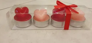 Set di 4 candeline a forma di cuore, perfette per creare un'atmosfera romantica. - Colori assortiti: rosso e rosa. - Confezione regalo con fiocco rosso.
