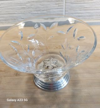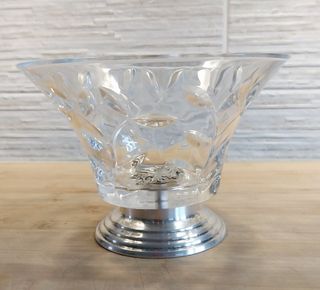 Elegante portacaramelle in cristallo venezianocon base in argento 925 - Design raffinato con dettagli lavorati.