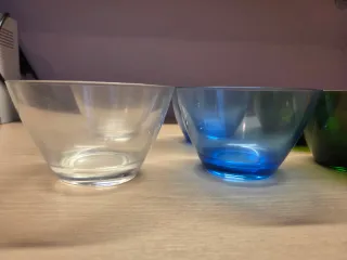 Set di 12 ciotoline in plastica diametro 12 cm altezza 7cm diamentro del fondo 6cm usate con alcuni segni ( vedi foto) rosse, arancio, verde, viola, azzurro, trasparente ( per ogni colore ci sono due ciotole)