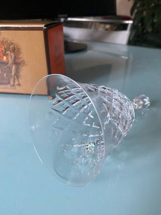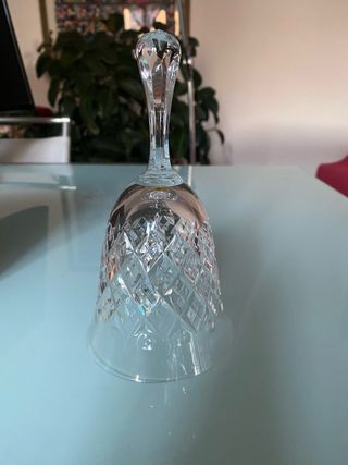Elegante campanella in cristallo firmata Royal Doulton. Un pezzo raffinato per la tua casa. - Design classico con lavorazione a rombi. - Manico lavorato. - Base trasparente.