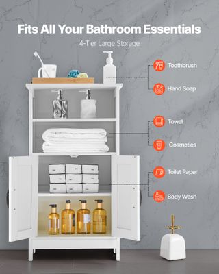 Mobiletto da Bagno Autoportante 4 Ripiani 2 Ante