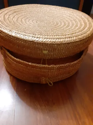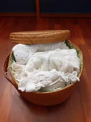 Cesto con pizzi in vimini e tessuto
