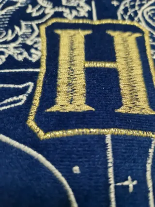Cuscino decorativo con lo stemma di Hogwarts. - Design ispirato a Harry Potter. - Dettagli ricamati. - Bordatura dorata.