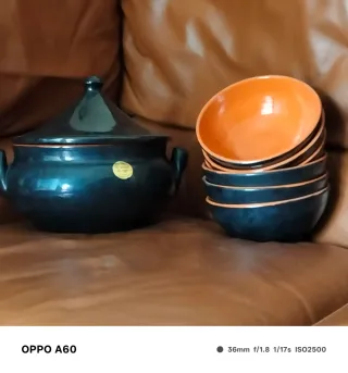 Zuppiera e ciotole in cotto