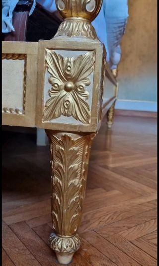 Vendo elegante letto matrimoniale in stile classico/barocco anni , completo di testata decorata e struttura rifinita in dettagli dorati. Vendo a parte i due comodini visibili in foto, perfetti per abbinarsi al design complessivo del letto. Misure indicative del letto: Testata: larghezza 177 cm, altezza 140 cm. Struttura letto: larghezza 176 cm, lunghezza 200 cm. Testata imbottita con tessuto decorato floreale e cornice dorata. Gambe e struttura del letto decorate con intagli raffinati e dettagli dorati. Aggiungo in regalo le due reti in foto. Ritiro a Bologna