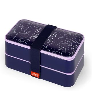Portapranzo a due piani con un design ispirato alle costellazioni e ai segni zodiacali. Perfetto per portare il pranzo con te. - Design a tema stelle e costellazioni. - Due livelli per separare i cibi. - Elastico di chiusura blu navy. - Logo Legami We are dreamers sul nastro.