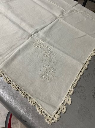 Tovaglia ricamata a mano con bordo uncinetto