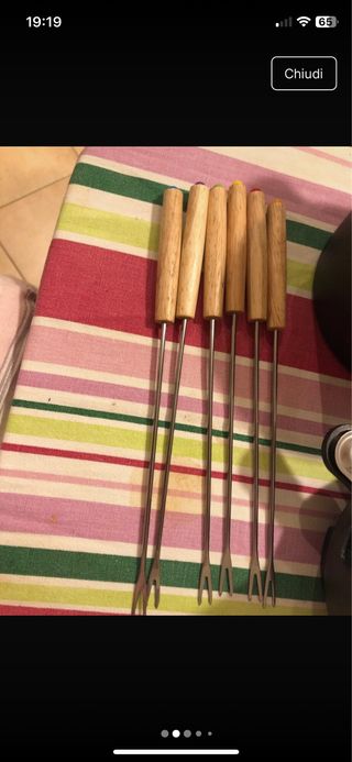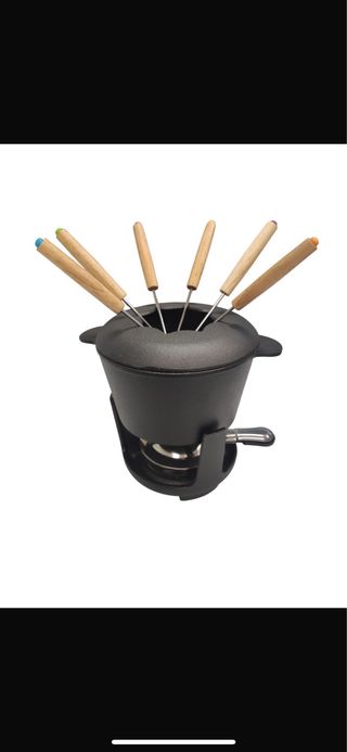 set fonduta con fornellino e 6 forchettine in ghisa. diametro 16,8 cm