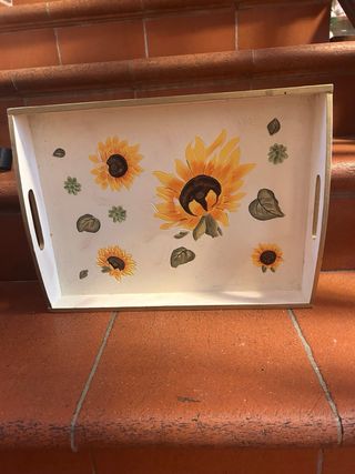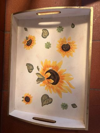 vassoio in legno dipinto girasole