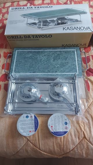 Grill da tavolo in pietra tipo ollare 37x18 con 2 bruciatori e relativi combustibile. Corredato di foglio istruzioni