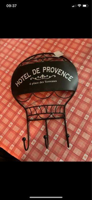 Bellissimo porta bottiglie in legno, stile rustico, con serigrafia 'Le Bistrot Resto & Café du Coin'. Perfetto per 6 bottiglie. - Struttura in legno robusta e ben rifinita. - Design accattivante, ideale per arredare con stile la tua cantina o cucina. - Ottimo stato, qualche piccolo segno di usura.