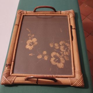 Bellissimo vassoio anni 80, in bambu e vetro.