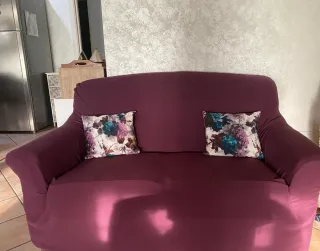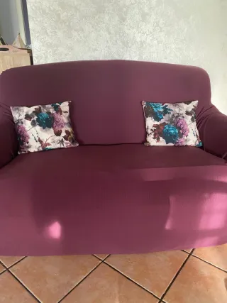 Divano 2 posti, viola prugna rivestito in tessuto. Comodo,ben pulito e in buone condizioni. Ideale per Soggiorno o Studio. ritiro a carico dell'interessato. Ritiro rapido prioritario. Chi può venire prima ha la precedenza. Non posso tenerli a lungo Sconto per chi prende tutti i mobili insieme nel mio profilo