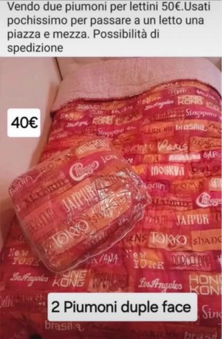 Vendo due piumoni double face, ideali per letti singoli. - Design con stampe di città.