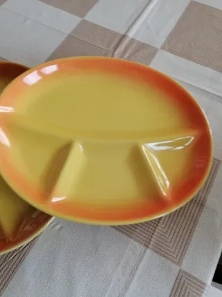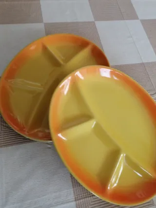 Set composto da due pirofile e due antipastiere, perfette per servire le tue pietanze. - Pirofile ovali con bordo sfumato giallo/arancio. - Antipastiere rotonde divise in tre scomparti, con bordo sfumato giallo/arancio.