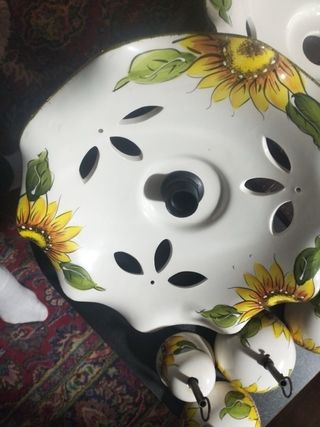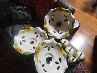 Set di piatti per lampadari con decorazioni a girasoli e coppette parafili. - Design floreale dipinto a mano. - Elementi in ceramica e plastica.
