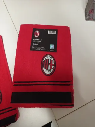 Set di asciugamani in spugna con logo AC Milan. - Set 1+1 - Logo AC Milan - Design a righe nere