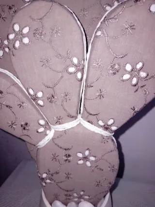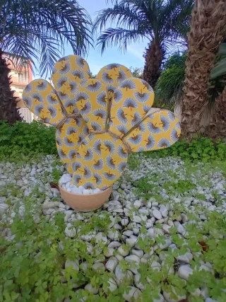 Deliziosa pianta decorativa a forma di cactus fatta a mano perfetta per aggiungere un tocco di originalità alla tua casa. - Realizzata in tessuto con un elegante motivo floreale. - Dettagli in filo bianco che creano un contrasto delicato. - Base riempita con sassolini bianchi.