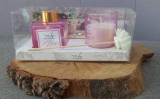 Elegante Diffusore "Rose" 100ml Candela e Bastoncini in Legno Buona Visibilità Nuovo