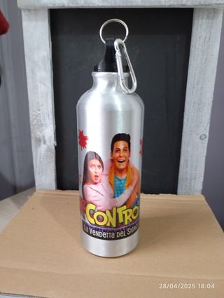 Borraccia inox Stampa " Me contro Te " Con Gancetto Misura 21 cm x 6 cm