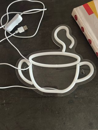 Lampada decorativa a forma di tazza di caffè fumante. - Design moderno e luminoso. - Ideale per creare atmosfera.