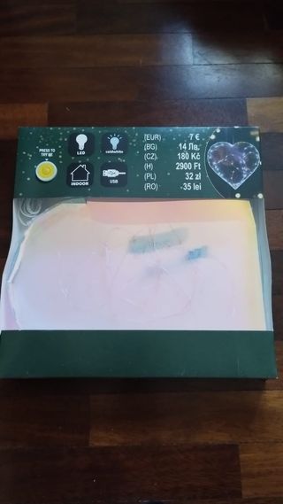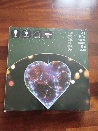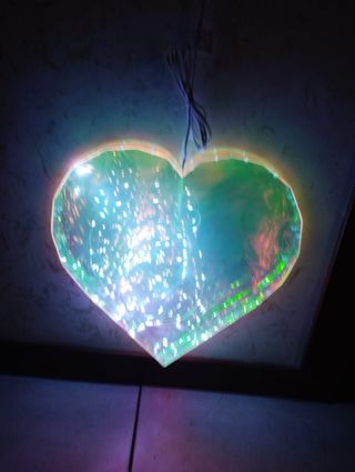 Cuore luminoso a LED, perfetto per decorare. D'effetto e romantico. In scatola originale, ha anche una batteria per provarlo direttamente da scatola. Multicolore. Dimensione 35 cm, ricaricabile tramite USB con cavo da 2 mt Design moderno e accattivante.Si puo' tenere in appoggio oppure appendere. Multicolore