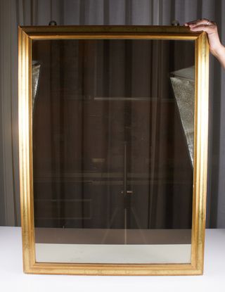 ◆ Cornice con vetro non riflettente, spesso scambiata per uno specchio ma priva di argentatura: il vetro non riflette, come visibile in foto. ◆ Cornice in legno con finitura dorata, formato verticale. Dimensioni: 78,5 × 58,5 cm. ◆ Oggetto atipico, ideale per usi creativi o scenografici: installazioni artistiche, decorazione d’interni, cornice per stampe o tessuti, vetrina decorativa. ◆ Venduto con descrizione trasparente: non è uno specchio funzionale.