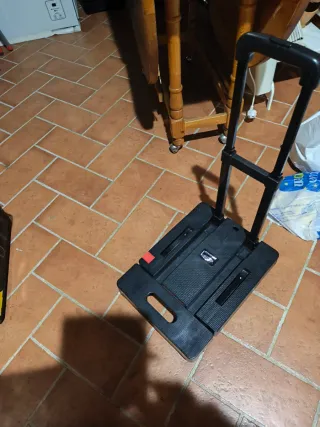 Carrello a mano pieghevole, pratico per trasportare oggetti. - Struttura robusta in plastica.piano lavoro allungabile. Portata fino a 220 kg. Dotato di 6 ruote che lo rendono molto stabile e robusto. Dimensioni in una foto. Usato solo due volte - Design compatto e facile da riporre. - Manico telescopico per una presa comoda.