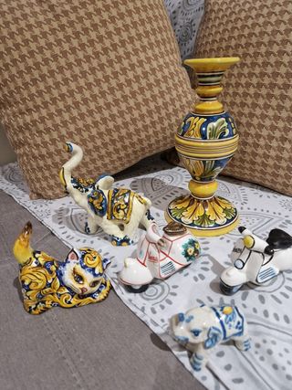 Vendo oggetti in fine ceramica tutti dipinti a mano:Portacandele :€10;Portatovaglioli grande:€12;gattini (cm10x10):€15;coppia gufi:€ 15;Farfalla(cm9x8,5)€7; 1 elefante €7; coppia vespette da collezione €15.