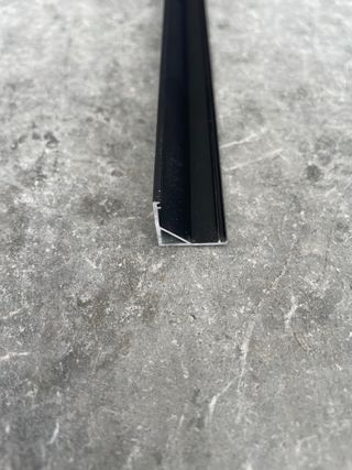 Profilo in alluminio angolare 90 gradi nero per striscia a led. Con schermatura nera opaca. Mai usata. Dimensioni : 2mt x 1,5cm x 1,5cm