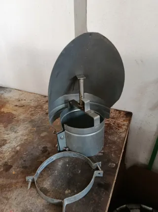 Sombrero giratorio tipo veleta, progettato per essere installato su camini o condotti. -150 mm. Realizzato in acciaio galvanizzato. Include staffa di fissaggio.