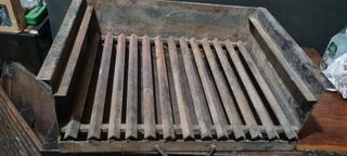 Brasero in ferro progettato per camini, ideale per contenere legna o carbone in modo sicuro. Materiale: Ferro, resistente alle alte temperature. Funzione: Si posiziona all'interno di un camino per elevare la legna e migliorare la circolazione dell'aria. Design: Dotato di barre angolari disposte per sostenere il combustibile. Utilizzo: Principalmente per riscaldamento interno o arrosti.