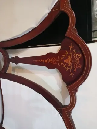 Elegante divanetto in stile Liberty, un pezzo d'arredo che aggiunge un tocco di classe. - Struttura in legno pregiato di mogano - Rivestimento da completare con tessuto da scegliere presso il proprio tappezziere secondo i propri gusti e l' ambientazione - Design ricercato con dettagli intarsiati in acero. Il prezzo indicato è per il mobile così com' è da foto, se lo si vuole completo di stoffa bisogna concordarlo a parte. Misure: 130 cm L - 95 cm H - 57 cm P. Consegna da concordare