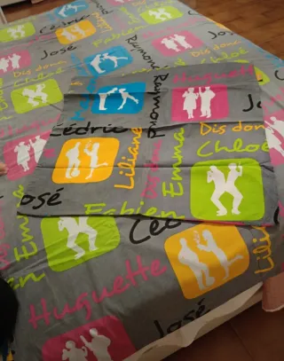 Copripiumino matrimoniale con una vivace fantasia di nomi e silhouette di coppie. - Design colorato e giocoso. - Ideale per aggiungere un tocco personale alla camera da letto.