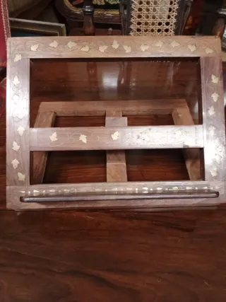 Elegante leggio in noce con intarsi. Epoca '900 Largo 33 cm altezza max 26 cm - Intarsi floreali in .ottone - Struttura in legno di noce. In perfette condizioni