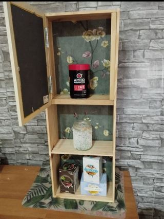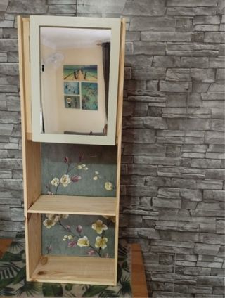 Mobiletto unico realizzato a mano, ideale per il bagno o la cucina, perfetto per aggiungere un tocco di stile alla tua casa. La struttura in legno è impreziosita da un elegante specchio. - Design artigianale - Specchio integrato - Decorazioni floreali sui pannelli posteriori