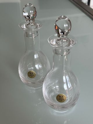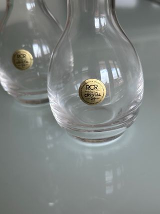 Elegante coppia di caraffe decanter in cristallo. - Marchio RCR. - Design trasparente.