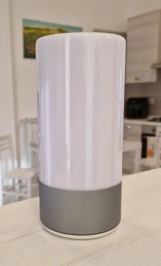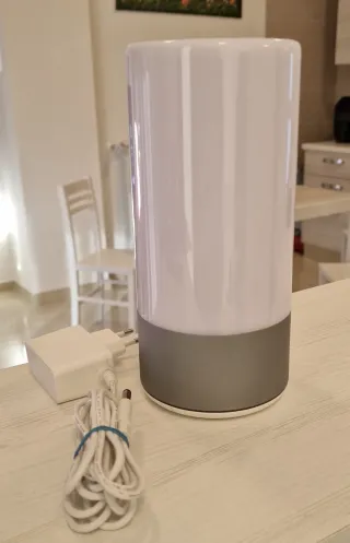 Lampada da comodino a led RGB È dimmerabile-luce calda a 3 intensità È possibile impostare il colore che si vuole tra quelli disponibili. È come nuova la vendo per inutilizzo. Non ho più la scatola originale.
