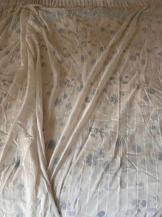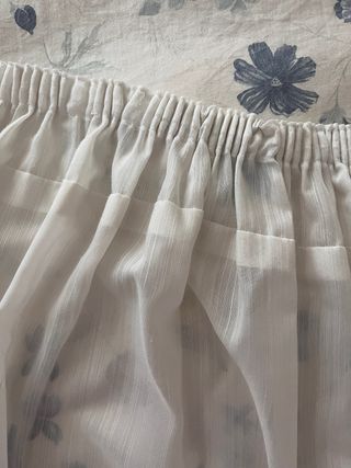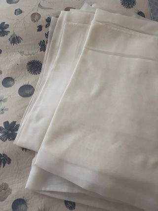 Elegante coppia di tende in chiffon color panna Larghezza parte alta cm. 23 Larghezza parte bassa cm. 148 Lunghezza cm.204 Balza cm. 10