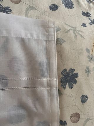 Bianca Cotone con inserti in filo di seta. Larghezza cm. 102 Lunghezza cm151 Balza cm. 6 Con gancetti per arricciatura