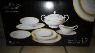 Elegante servizio da tavola Rosentable per 12 persone. - Design raffinato con dettagli oro. - Realizzato in porcellana di alta qualità. - Include pezzi per 12 coperti. Servizio piatti in porcellana Rosentable da 100 pezzi Limoges Collection. Nuovo mai usato, come si può vedere dalle foto.